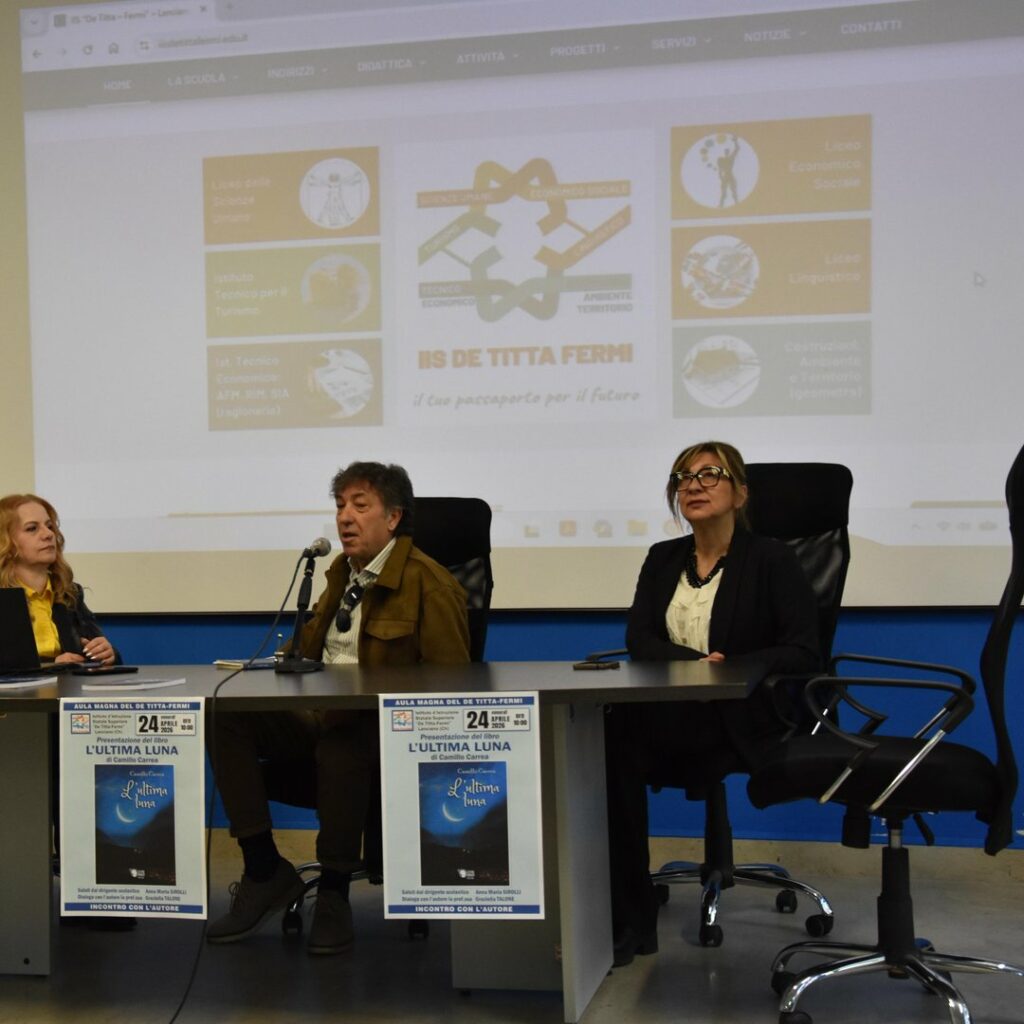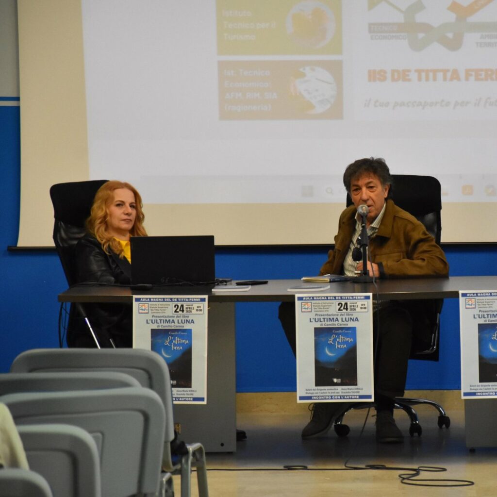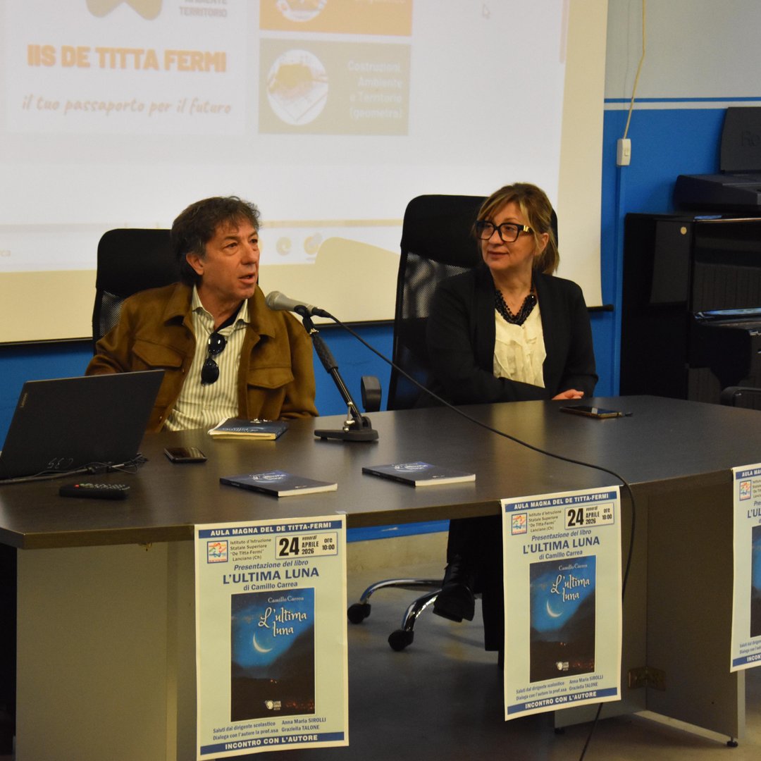 Il nostro istituto ha avuto il privilegio di ospitare, venerdì 24 aprile 2026, lo scrittore Camillo Carrea nella nostra Aula Magna. L’incontro è stato dedicato alla presentazione del suo romanzo “L’ultima luna”, un’opera che trasporta il lettore nell’atmosfera suggestiva di un borgo abruzzese tra gli anni cinquanta e sessanta. Attraverso una narrazione che fonde sapientemente elementi storici e leggende locali, l’autore ha saputo affascinare la platea svelando i segreti di un mondo in cui il reale e il fantastico si intrecciano costantemente.