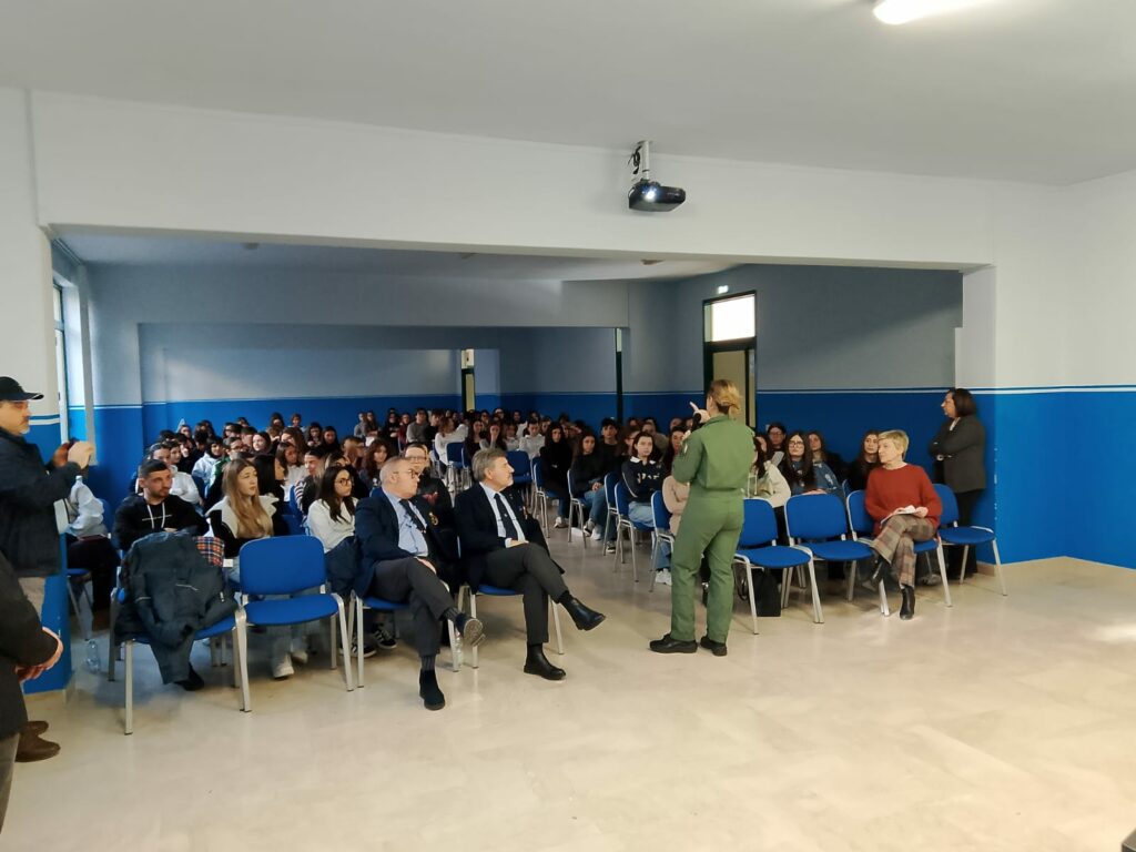 Figura pionieristica e simbolo di determinazione, il Tenente Colonnello Angelucci — prima donna istruttore di volo nella storia della Forza Armata — ha dialogato con i ragazzi, portando la sua testimonianza diretta di donna pilota e comandante. L'evento ha offerto agli studenti non solo una panoramica sulle carriere militari, ma un esempio concreto di come passione e impegno possano infrangere ogni barriera, grazie anche al confronto diretto con il personale in servizio presente in sala.